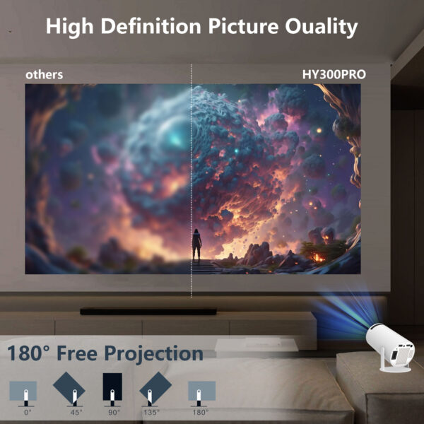 10 reviews for HY300PRO Mini Projector with WIFI 6 and Bluetooth, 4K 1080P Support Portable Projector 180° Rotatable 130” Screen Movie Projector Auto Keystone Compatible for Laptop, PC, Smartphone